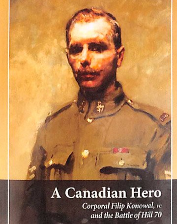 Filip Konowal, a Ukrainian Canadian volunteer serving as a corporal with the 47th Canadian Infantry Battalion of the Canadian Expeditionary Force, fought with exceptional valour in August 1917 during the battle for Hill 70, near Lens, France. For his courage, Konowal was awarded the Victoria Cross, the highest decoration of the British Empire, by King George V in London on 15 October 1917. His Majesty remarked: Your Exploit is one of the most daring and heroic in the history of my army. For this, accept my thanks.